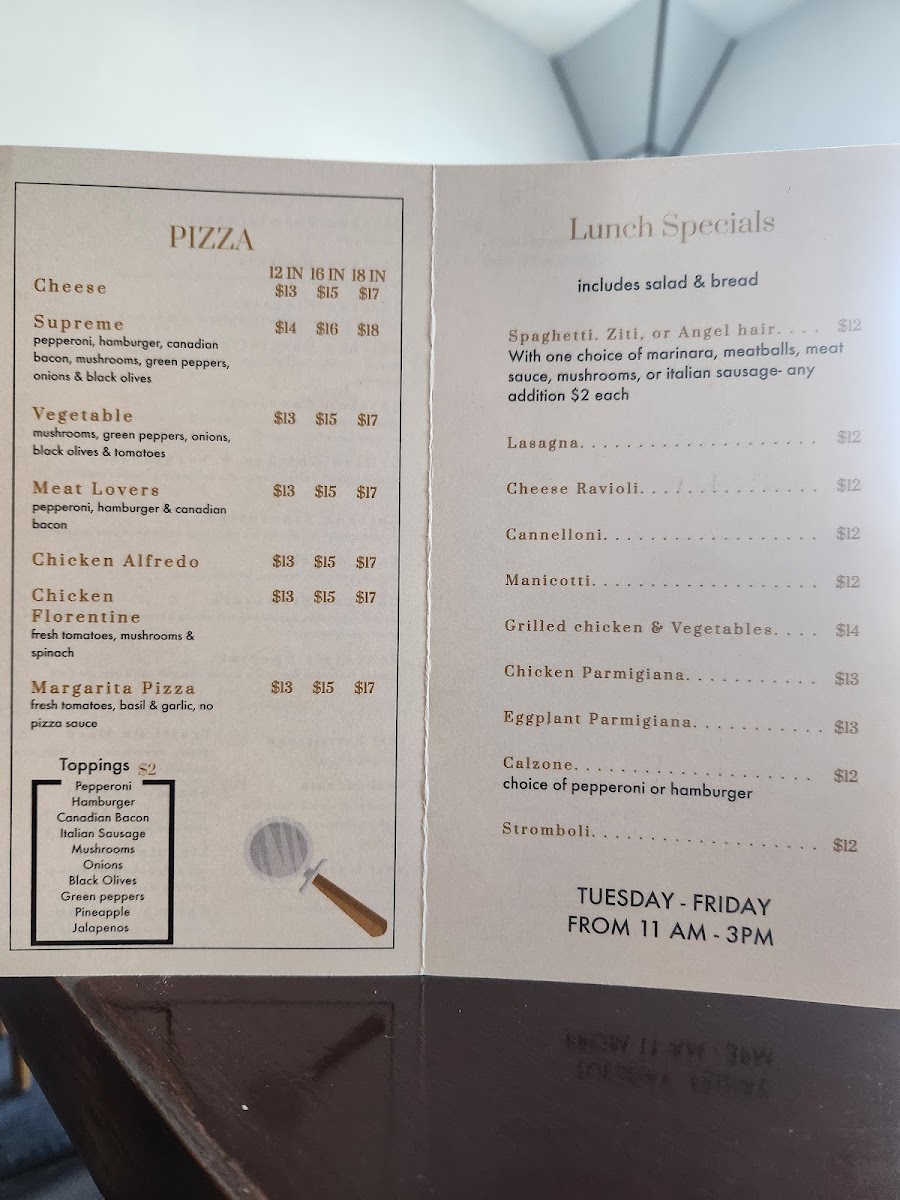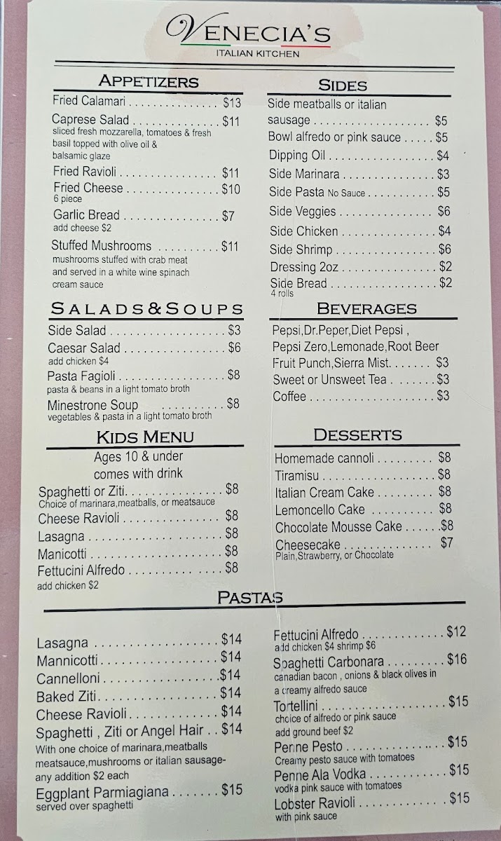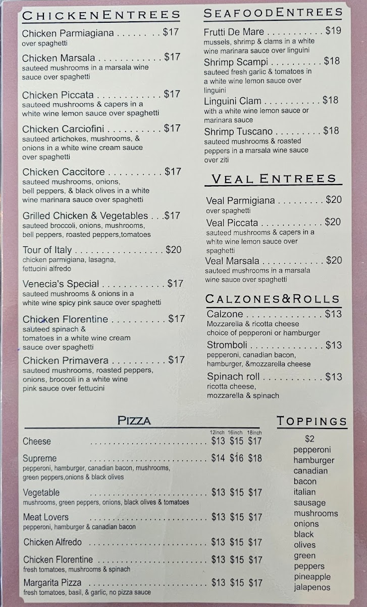 Angel hair pasta served with choice of marinara, meat, mushroom, italian sausage, or pink sauce.